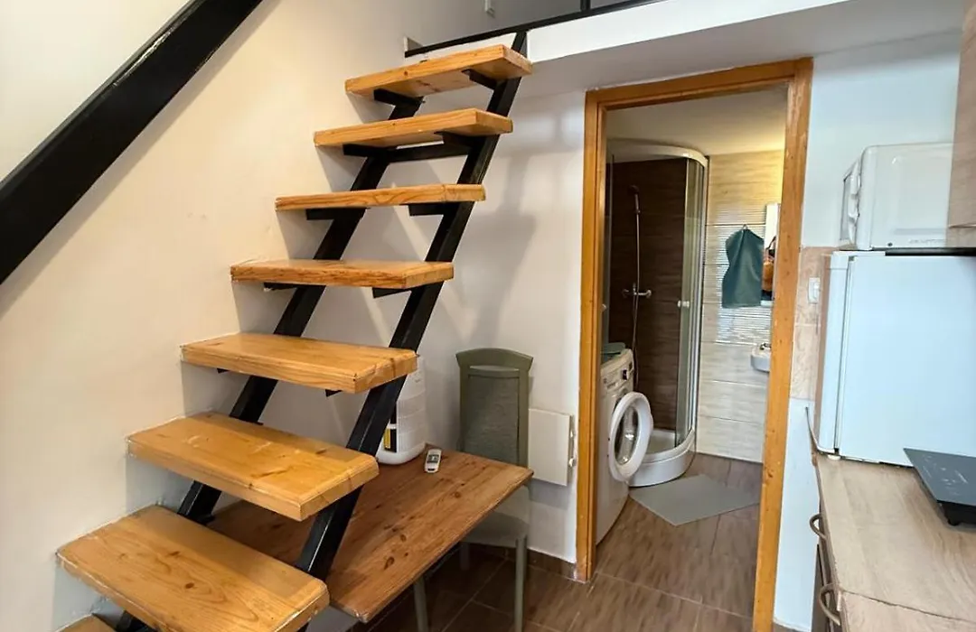 ציוד המטבח כולל מקרר וכיריים. דירת Nefelejcs Cozy Apartment ממוקמת במרחק של 10 דקות הליכה בלבד על תחנת מטרו תחנת ה Hosok tere.